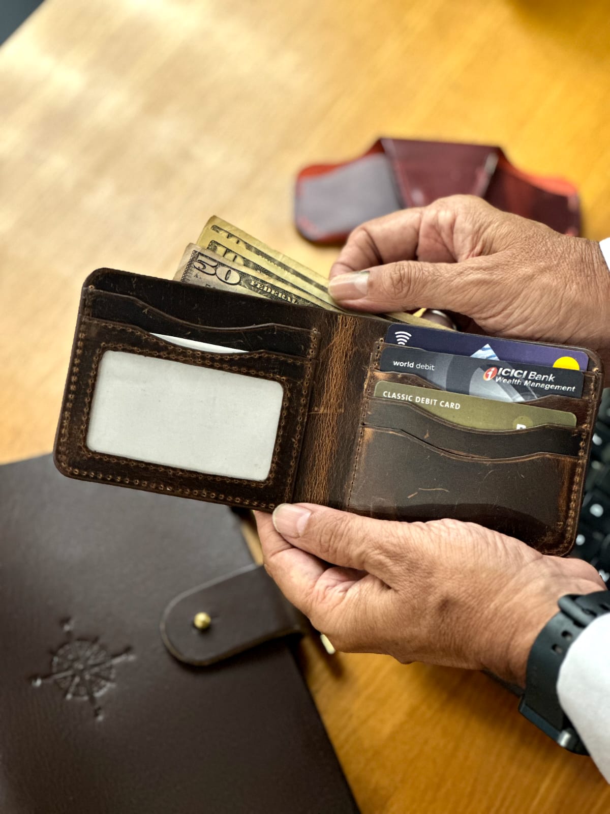 - Compartments: 1 compartment, 5 credit card slots 1 id.